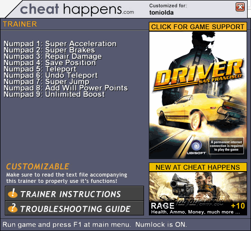 狂飙:旧金山车辆修改器 v1.01 绿色版 |