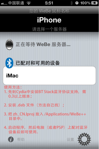 iPhone做成蓝牙键鼠WeBe++触摸板 1.1-6汉化破解版 |